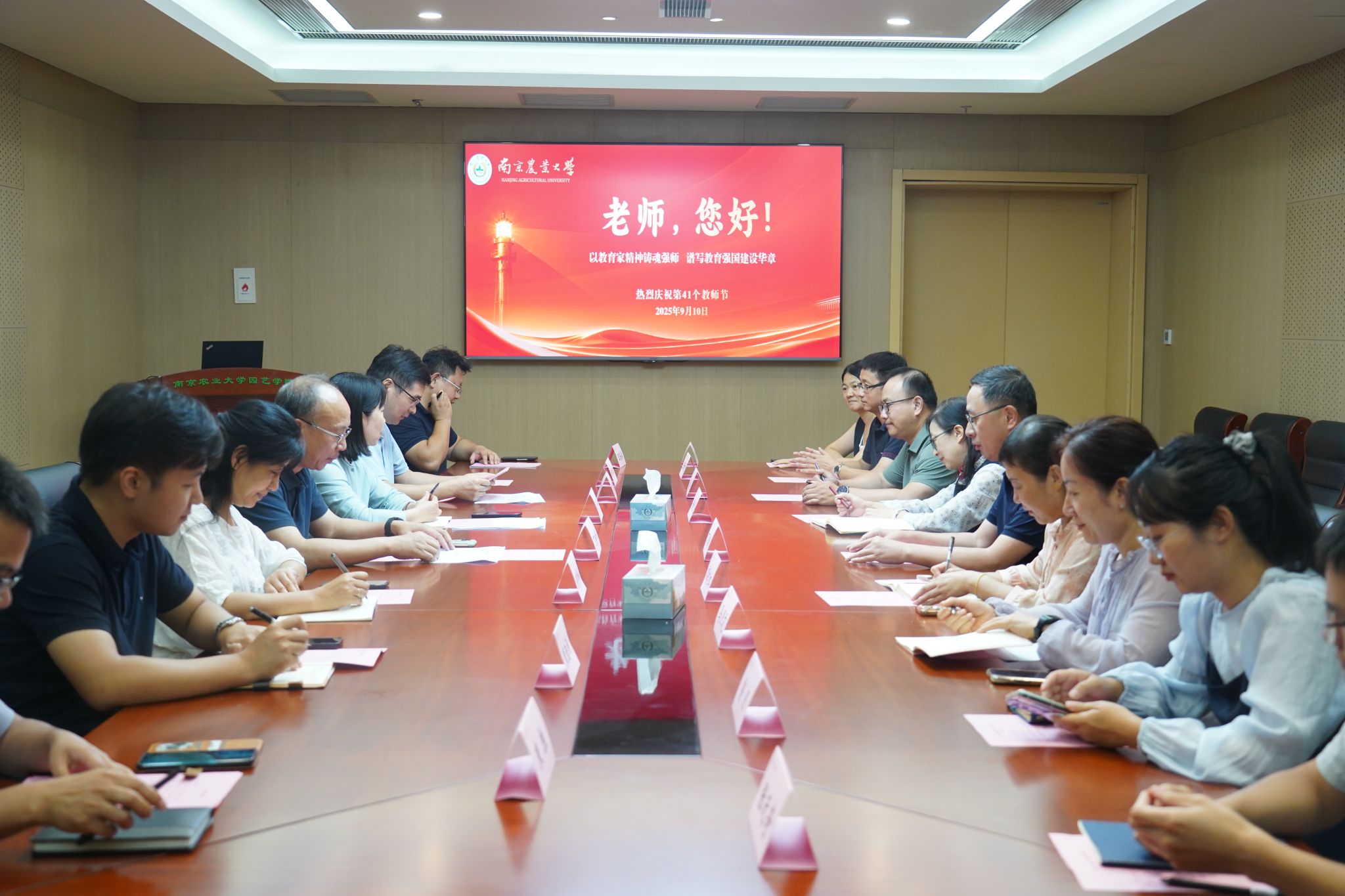 座谈会上,九位来自教学、科研、实验技术及员工工作一线的教师代表对校领导的亲切关怀表示衷心感谢,并围绕“立德树人”的根本任务,结合各自岗位与从教经历,畅谈育人心得、共话教育理想,现场气氛温馨而热烈。
