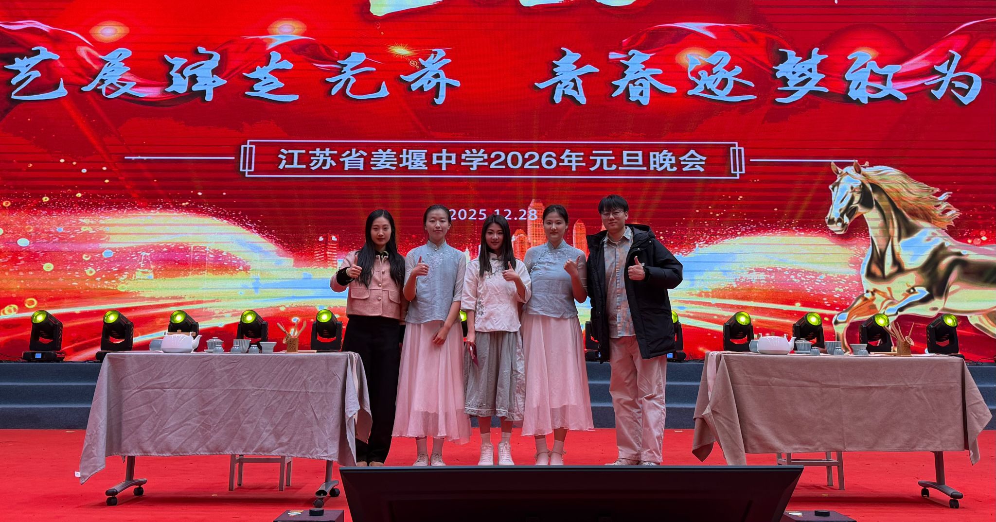12月29日晚,江苏省泰州市姜堰中学元旦晚会现场茶香袅袅,古韵悠长。应姜堰中学邀请,云顶国际官方网站茶艺协会的同学们走进中学校园,呈现了一场融合了传统文化底蕴与青春活力的茶艺表演。