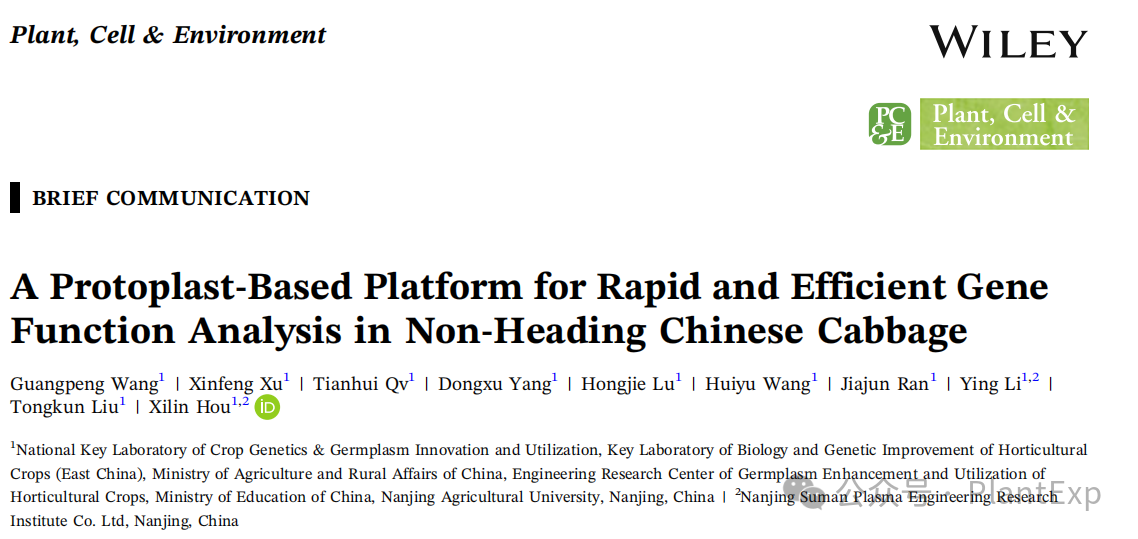 近日,《Plant, Cell & Environment》杂志在线发表了云顶国际官方网站侯喜林教授团队题为“A Protoplast‐Based Platform for Rapid and Efficient Gene Function Analysis in Non-Heading Chinese Cabbage”的研究论文,开发了组织和基因型非依赖的不结球白菜原生质体分离体系,并构建了整合蛋白亚细胞定位、蛋白互作验证、CRISPR/Cas9编辑预筛选以及高通量组学测序等多功能分析的高效研究平台(图1),为不结球白菜以及其他十字花科非模式蔬菜的功能基因组学研究提供了有效的工具。